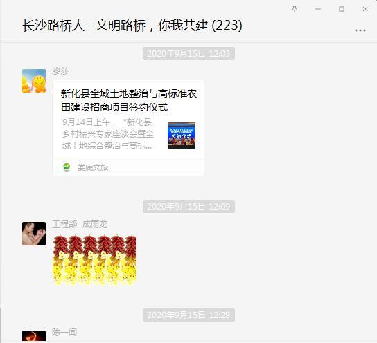圖為:公司微信群發(fā)布新化縣全域土地整治與高標準農田建設招商項目簽約儀式的報道鏈接。