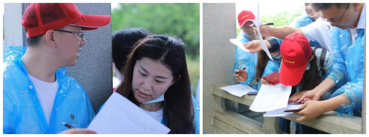 下午兩點(diǎn),全體人員統一乘坐地鐵來(lái)到橘洲游客中心,整個(gè)健步走全程5公里,每四人一組,大家自由組隊,每隊到四個(gè)指定答題點(diǎn)進(jìn)行黨史學(xué)習教育題目作答,最終決出三支優(yōu)勝隊伍。出發(fā)之前,大家還用簽字筆在紅色扇面上一筆一劃寫(xiě)下了“不忘初心、牢記使命”“紅心向黨”等對黨的宣言。