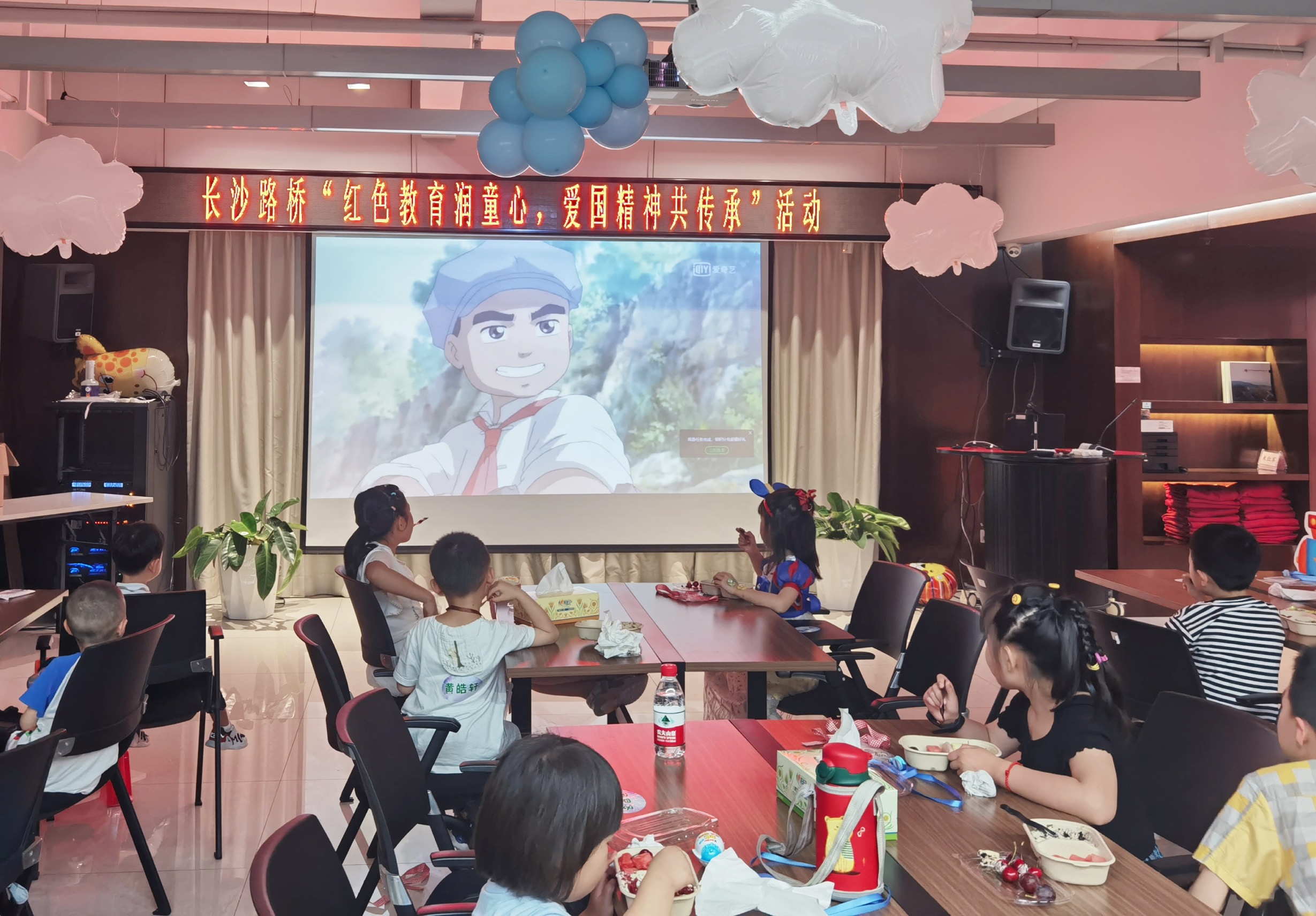 “少年智則國智,少年富則國富,少年強則國強……”《少年中國說(shuō)》詩(shī)歌朗朗上口,稚嫩的嗓音表現出小小少年們意氣風(fēng)發(fā)、積極向上的精神風(fēng)貌。隨后小朋友們觀(guān)看了愛(ài)國主義影片《閃閃的紅星》,整個(gè)觀(guān)影過(guò)程中,孩子們專(zhuān)注認真,深受電影情節感染。