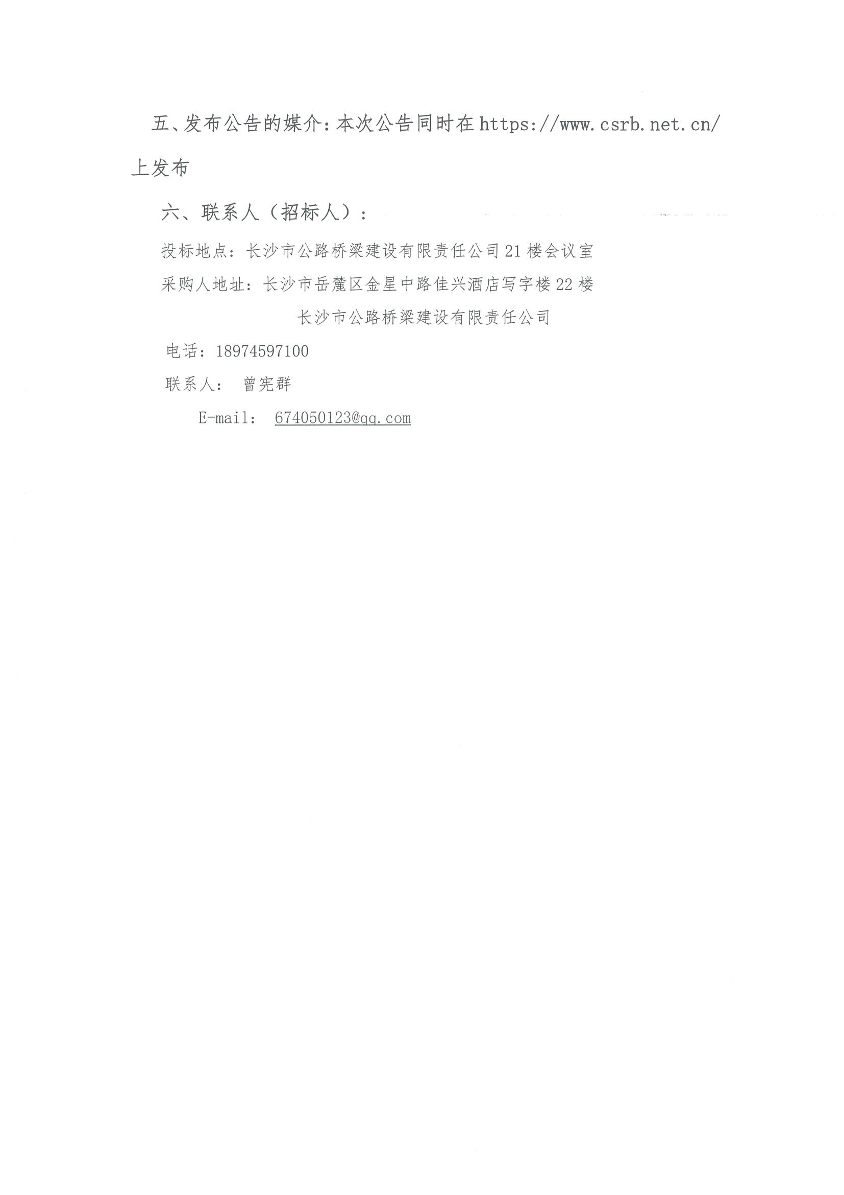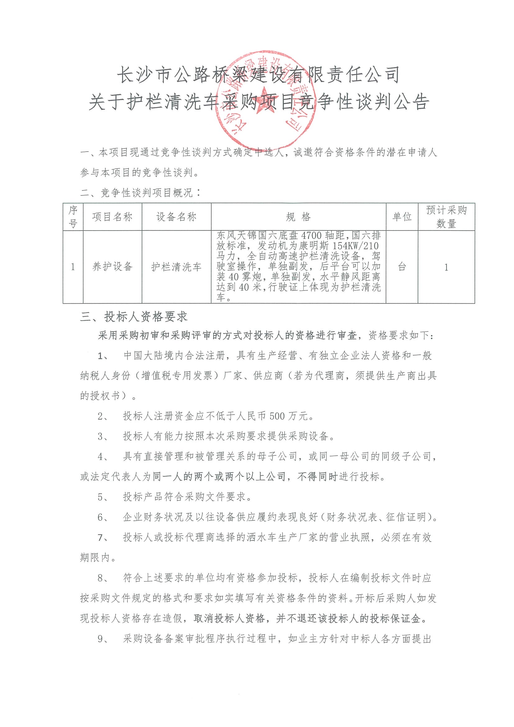 長(cháng)沙市公路橋梁建設有限責任公司關(guān)于護欄清洗車(chē)采購項目競爭性談判公告