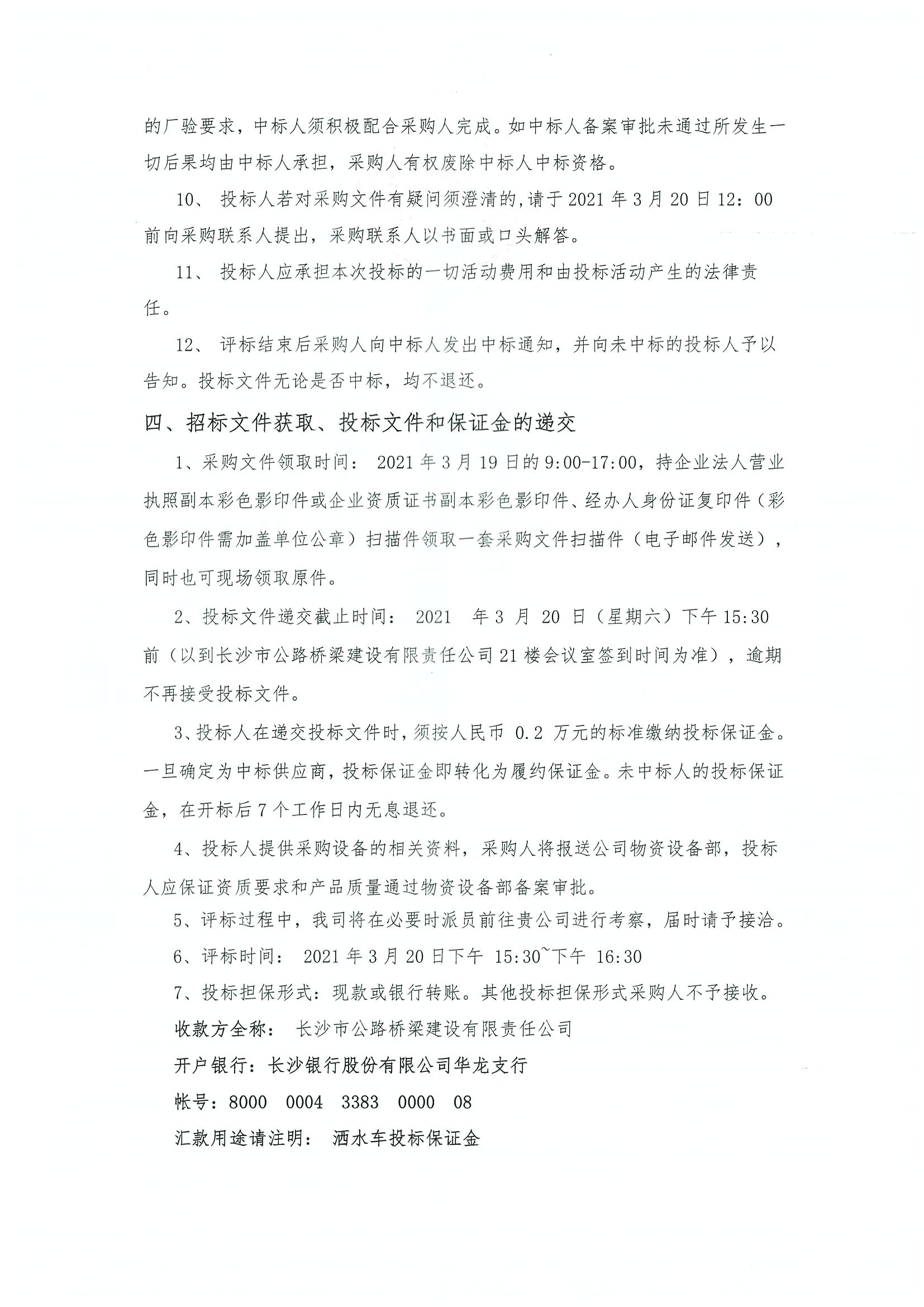 【概要描述】長(cháng)沙市公路橋梁建設有限責任公司關(guān)于護欄清洗車(chē)采購項目競爭性談判公告