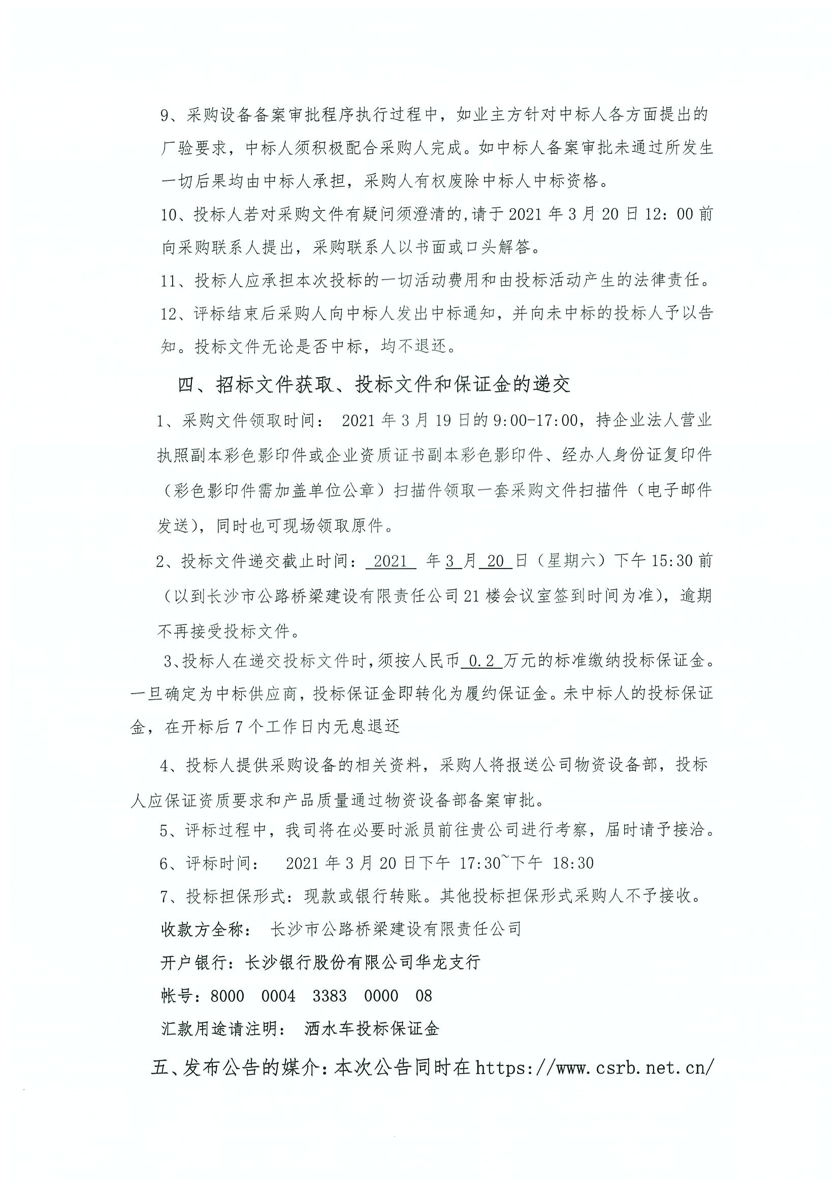 【概要描述】長(cháng)沙市公路橋梁建設有限責任公司關(guān)于墻面清洗車(chē)采購項目競爭性談判公告