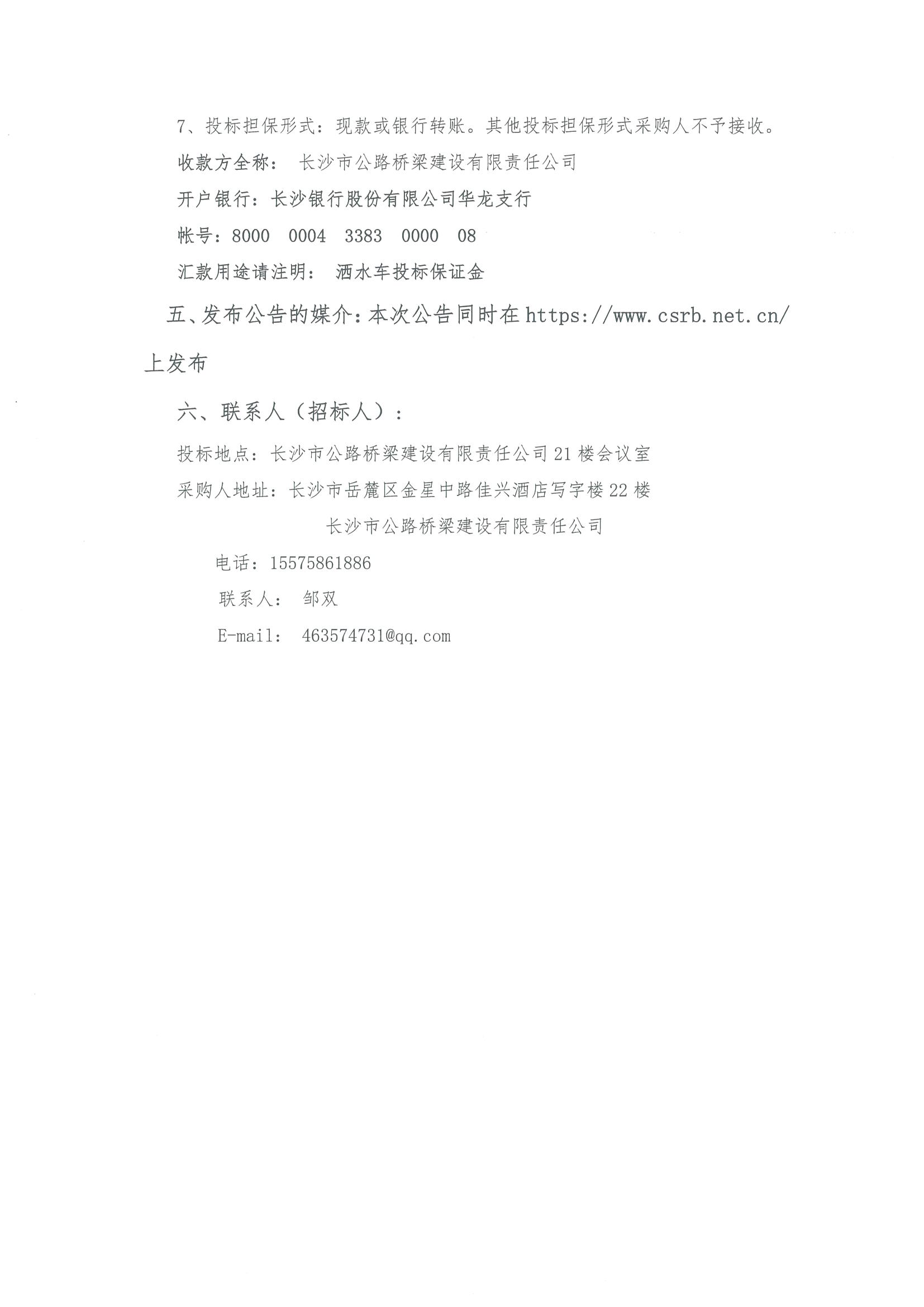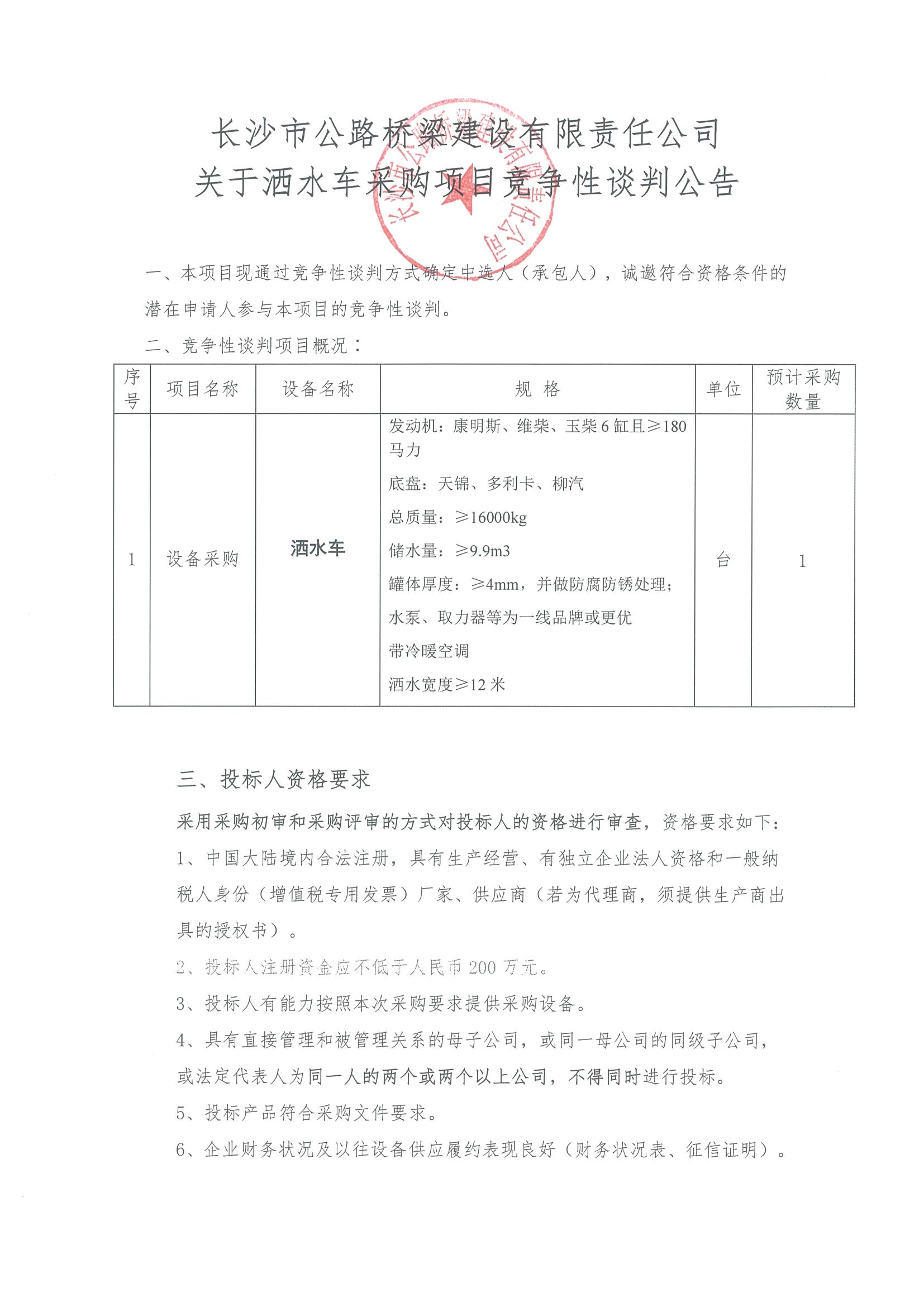 長(cháng)沙市公路橋梁建設有限責任公司關(guān)于灑水車(chē)采購項目競爭性談判公告