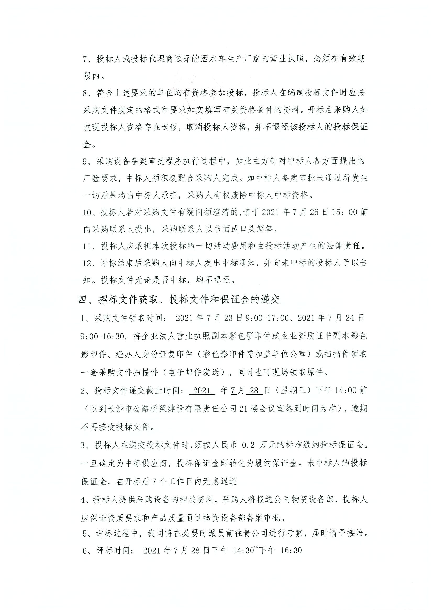 【概要描述】長(cháng)沙市公路橋梁建設有限責任公司關(guān)于灑水車(chē)采購項目競爭性談判公告