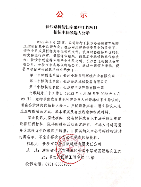 清掃車(chē)采購談判邀請公告