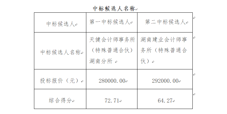 根據相關(guān)法律法規及比選文件的規定,長(cháng)沙市公路橋梁建設有限責任公司海南辦事處經(jīng)營(yíng)情況專(zhuān)項審計服務(wù)項目(第二次)評標工作已經(jīng)結束,本項目評標辦法采用的“綜合評估法”。評標委員會(huì )推薦了3名中標候選人,已于2022年11月28日公示,公示期滿(mǎn)后,因排名第一的中標候選人放棄中標,比選人按照評標委員會(huì )提出的中標候選人名單排序依次確定其他中標候選人為中標人,現將相關(guān)信息重新予以公示: